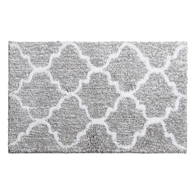 Gi badet ditt et løft med vår nydelige badematte med orientalsk mønster! Denne matten er ikke bare supermyk og behagelig for føttene dine etter en varm dusj, men den tilfører også et snev av eksotisk eleganse til rommet. Det stilige grå- og hvite designet med et gjentagende, buet mønster, minner om vakker arabisk eller marokkansk kunst, og skaper en følelse av ro og luksus. Forestill deg å trå ut av dusjen og ned på denne fluffy matten – en liten bit av spa-følelse hjemme hos deg. Den er perfekt for deg som ønsker å kombinere funksjonalitet med et unikt og dekorativt element i baderomsinnredningen.