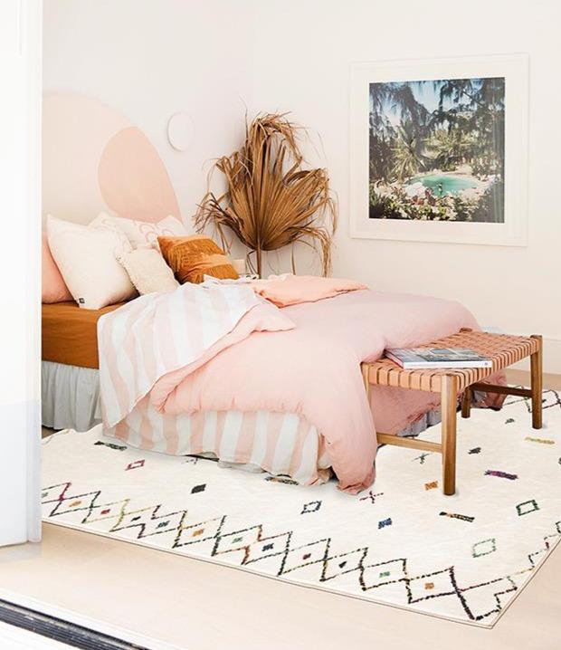 Hvitt etnisk berberteppe for soverom: Fordeler og Funksjoner