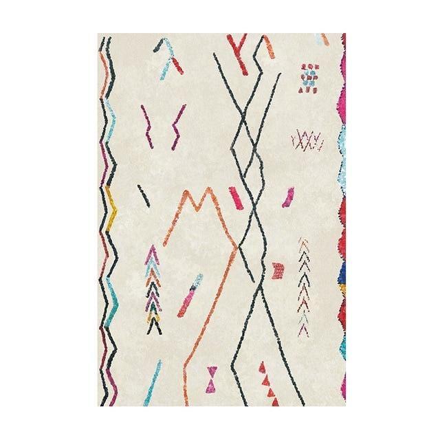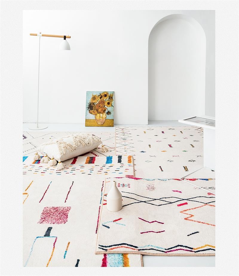 Dette moderne hvite teppet i berberstil er mer enn bare et vakkert tilskudd til hjemmet ditt; det er en investering i komfort og stil. Med sin myke tekstur og lekne, fargede mønstre, skaper det en koselig atmosfære og gir rommet en umiddelbar oppgradering. Tenk deg følelsen av å synke ned på det myke teppet etter en lang dag, eller hvordan det lyser opp stuen din med sine subtile farger og mønstre. Det er det perfekte fundamentet for å bygge et rom som reflekterer din unike stil, enten du foretrekker en minimalistisk, bohemsk eller eklektisk innredning. La dette teppet være det nye midtpunktet som samler rommet og skaper en følelse av ro og balanse.