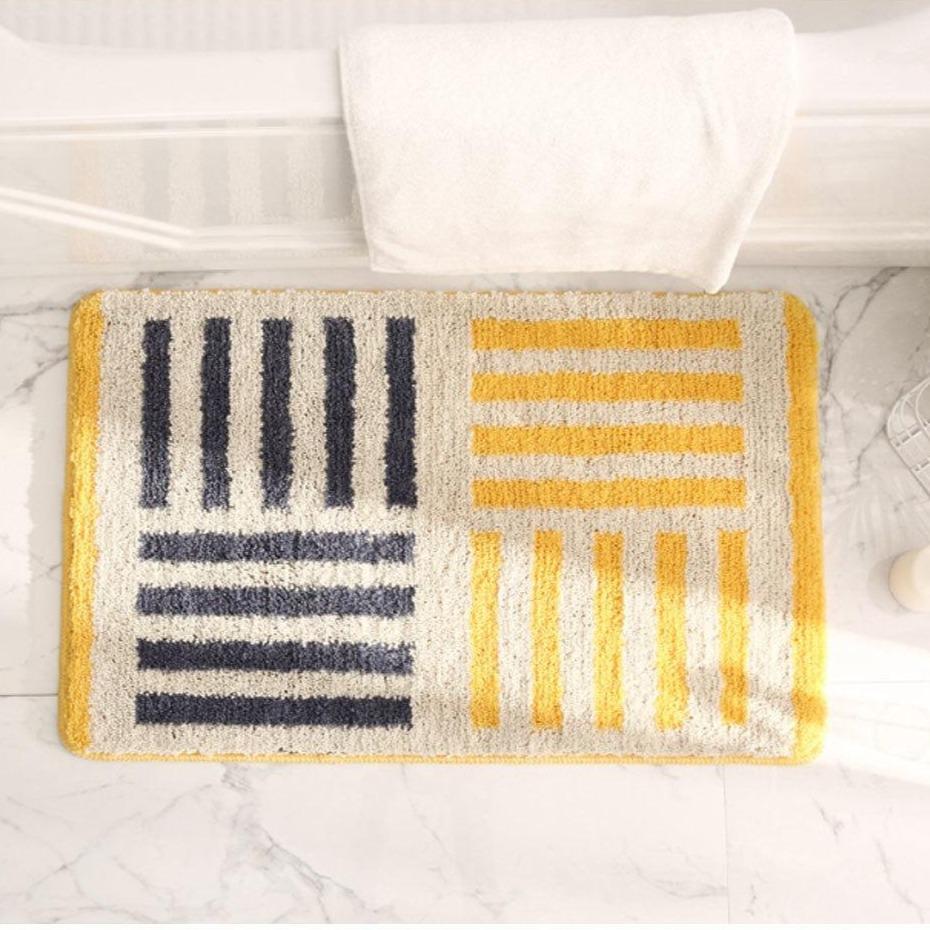 Myk gul baderomsmatte med striper: Start dagen med stil!