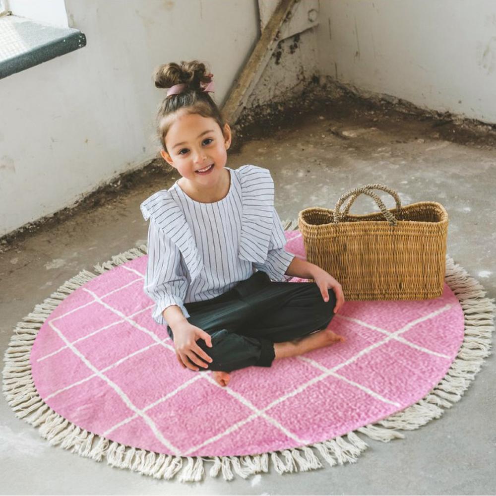 Rundt rosa teppe i berberstil: En drøm for barnerommet