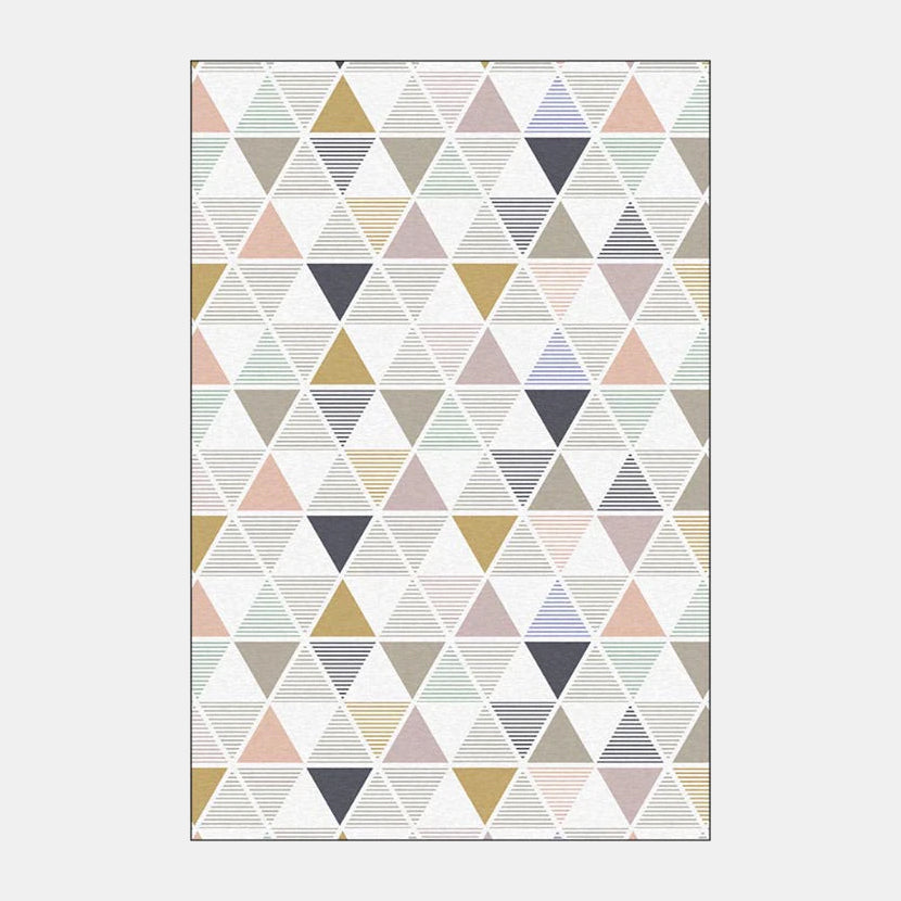 Gi hjemmet ditt et løft med vårt stilige Skandinaviske teppe i beige toner. Dette teppet er designet for å skape en rolig og innbydende atmosfære, perfekt for stuen, soverommet eller barnerommet. Med sitt unike geometriske mønster av triangler i dempede farger som beige, lys rosa, okergul, grå og et hint av mintgrønn og blått, tilfører det et moderne og lekent preg uten å overvelde rommet. De forskjellige fargene, kombinert med hvite triangler og noen med delikate striper, gir en fin dynamikk og dybde. Tenk deg å starte dagen med følelsen av dette myke teppet under føttene, mens sollyset strømmer inn og fremhever de beroligende fargene. Det er mer enn bare et teppe; det er en stemningsskaper som bringer hygge og stil inn i hverdagen.